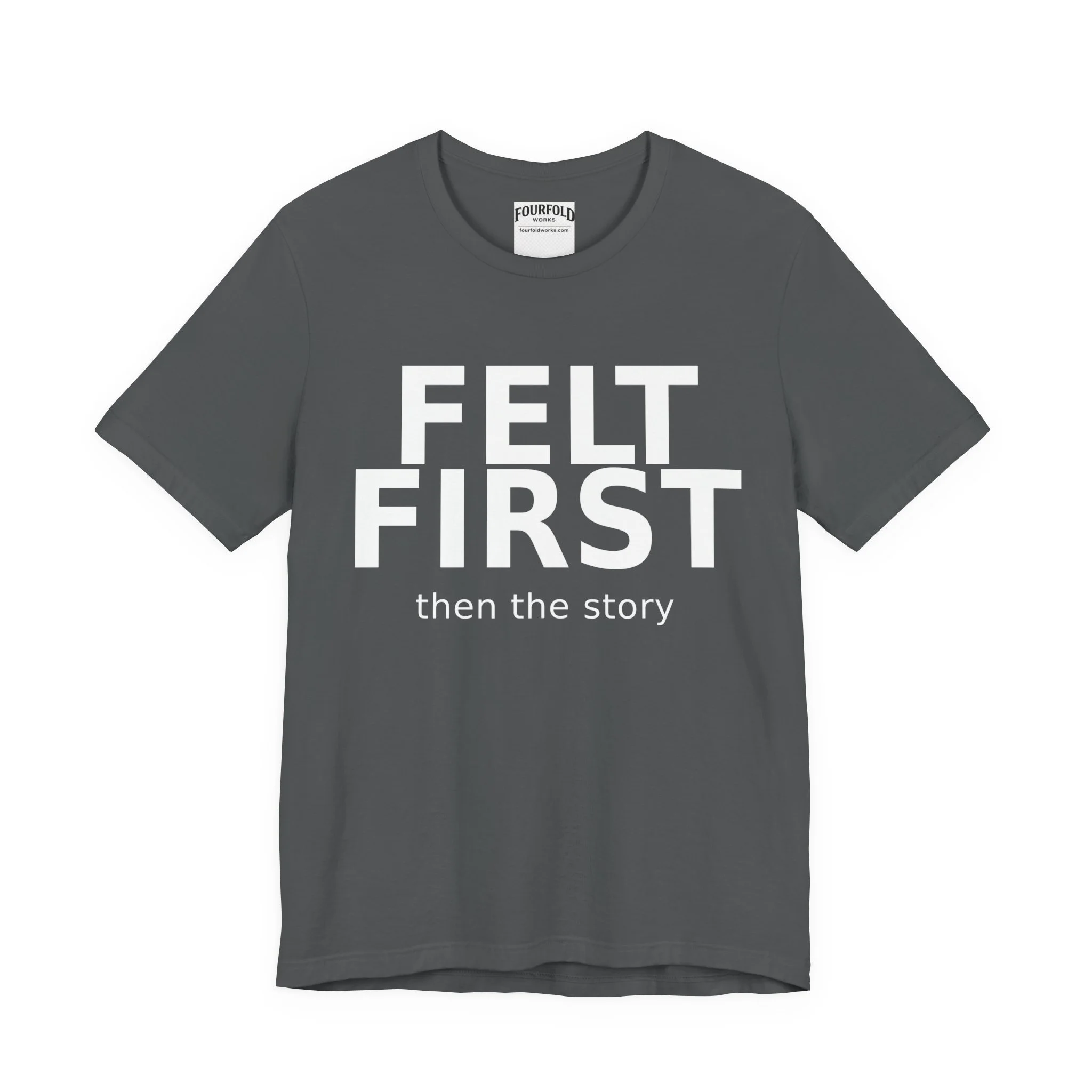 “FELT FIRST then the story” is a reminder to notice what’s really happening before you react. Clean, bold, and direct — something you’ll wear because it means something, not just because it looks good.